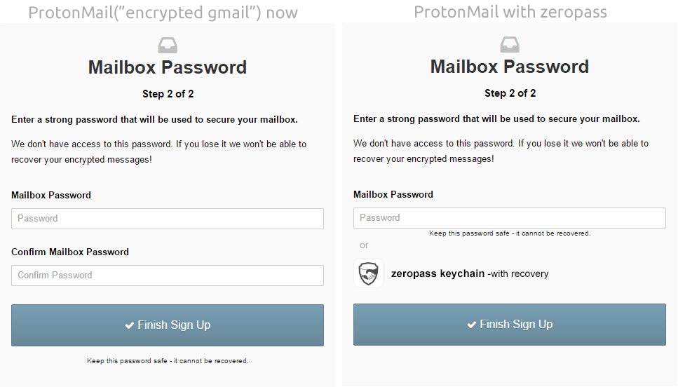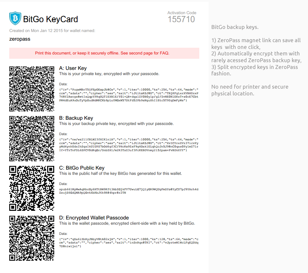 One click and your private key is securely stored (and split afterwards) in ZeroPass fashion.